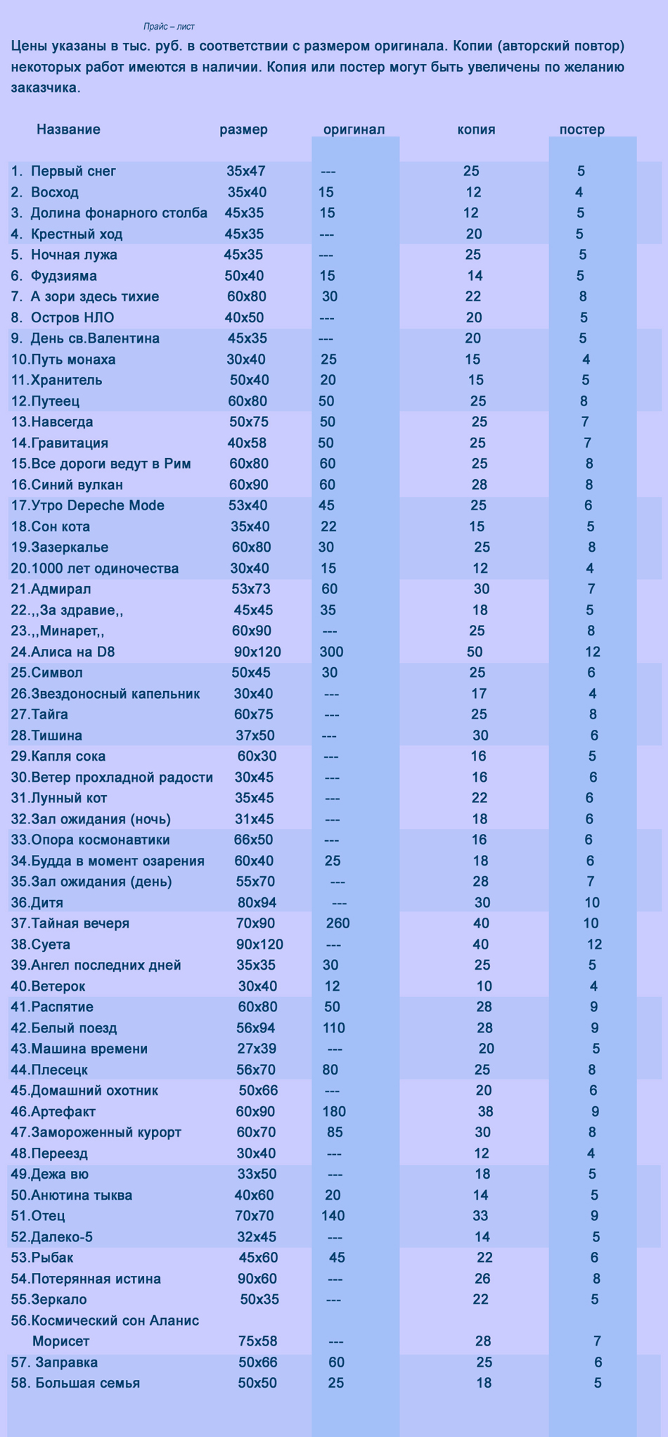 Как купить картину, заказать авторский повтор (менее дорогой, но не менее качественный вариант в случае недоступности оригинала), или заказать постер сюжета практически на любом носителе, можно узнать в разделе "Купить картину". В этом же разделе представлены образцы работ выполненных на заказ (портреты, натюрморты, пейзажи и другие сюжеты), здесь же прайс-лист с ценами на картины.